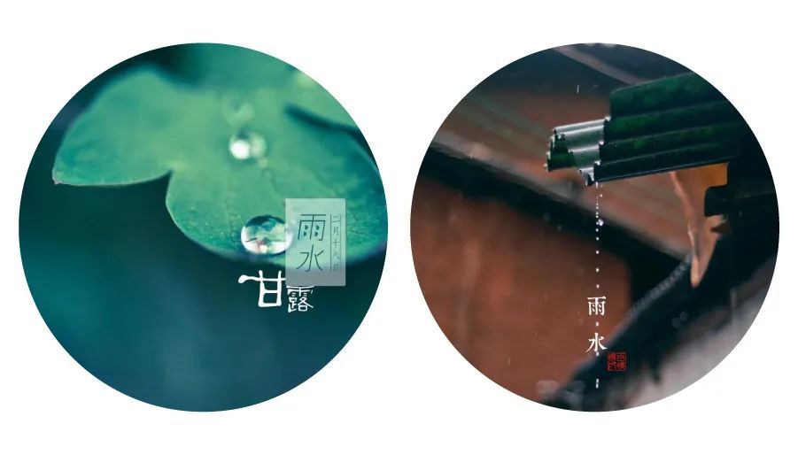 雨水的元素相对而言会好提炼很多,水滴、雨滴是很容易联想到的元素,并且有大寒的基础,我们也很容易将笔画的处理方式与飞檐翘角相结合。